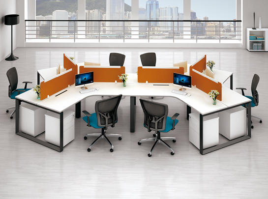 時(shí)尚簡(jiǎn)約的“口字形鋼腳”搭配暖色的晨熙白臺(tái)面板,造就了這款時(shí)尚大方的開(kāi)放式職員辦公桌??啥ㄖ聘鞣N尺寸及多變的造型,配合的鮮艷的藍(lán)色桌面屏風(fēng)。造就了富有創(chuàng)意現(xiàn)代的辦公空間,提供適度的隱私,富有人性關(guān)懷。