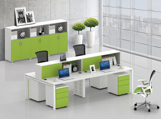 格萊美職員辦公桌擁有多種組合方式,除了單排、雙排的造型外,四人位組合,六人位組合,八人位組合,還有三人120°、四人十字形組合方式,能迎合不斷變化的辦公環(huán)境需求。120°型工作站為小團(tuán)隊(duì)協(xié)作辦公提供支持,3人位或6人位,按需求分配位置,利于同一團(tuán)隊(duì)的同事進(jìn)行互動(dòng)、交流,提供工作效率。