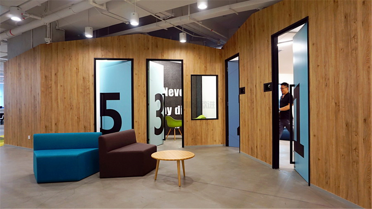 在前廳放置了富有創(chuàng)意的休閑沙發(fā)及簡約時尚的休閑桌。桌子是簡約的鋼木結構,沙發(fā)是采用溫馨的布藝沙發(fā)搭配鮮明的色采組合。無論是接待客戶還是員工在此小敘交流都充滿了無限可能。或是工作之余,捧一杯熱咖啡,在沙發(fā)上發(fā)發(fā)呆,是很愜意的事情。充分體現(xiàn)了作為一家互聯(lián)網(wǎng)公司的自由,創(chuàng)意,人性,綠色的辦公整體空間環(huán)境。